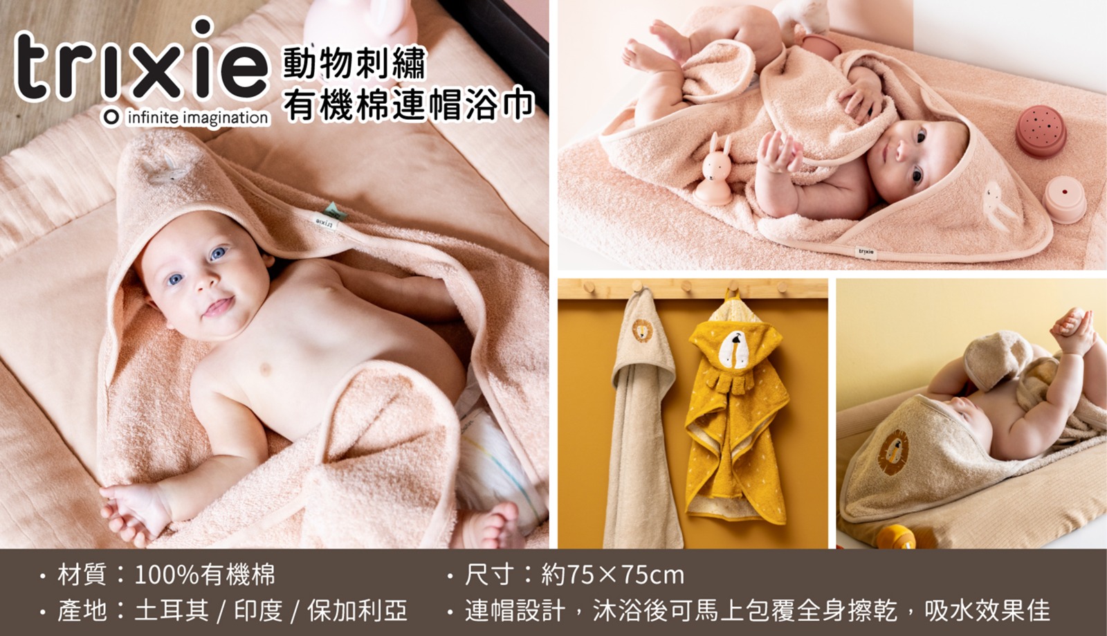 【莉芙太樂】比利時 ★ trixie ★有機棉浴巾斗篷ˍ用品ˍ包包